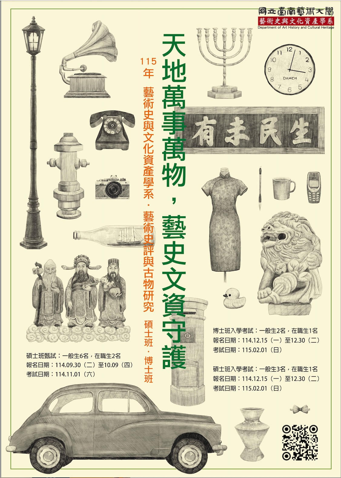 【實習徵才】臺南藝術大學115學年度藝術史評與古物研究碩博士班考試