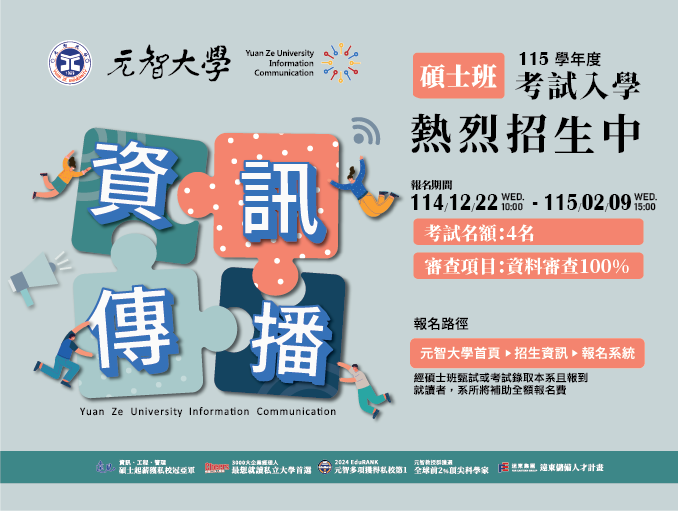 【招生資訊-轉知】115學年度元智資訊傳播學系碩士班考試招生