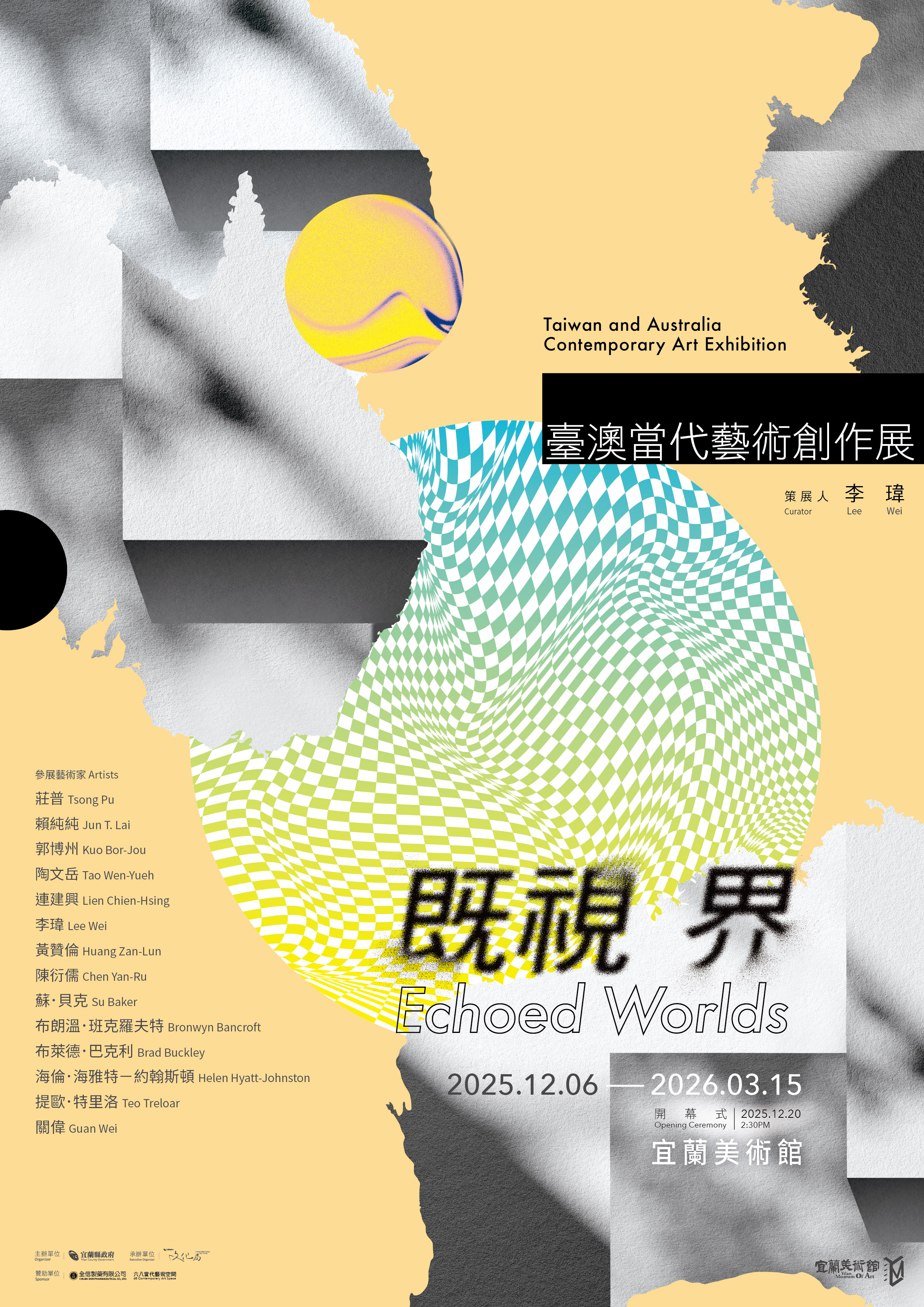 「既視.界」,象徵跨越文化邊界時的熟悉感與共鳴。展覽聚焦於臺灣與澳洲 的當代藝術,邀請藝術家透過繪畫、裝置、雕塑、影像及跨媒介創作,共同展 現兩地在自然環境、歷史文化、政治與藝術思維上的對話。