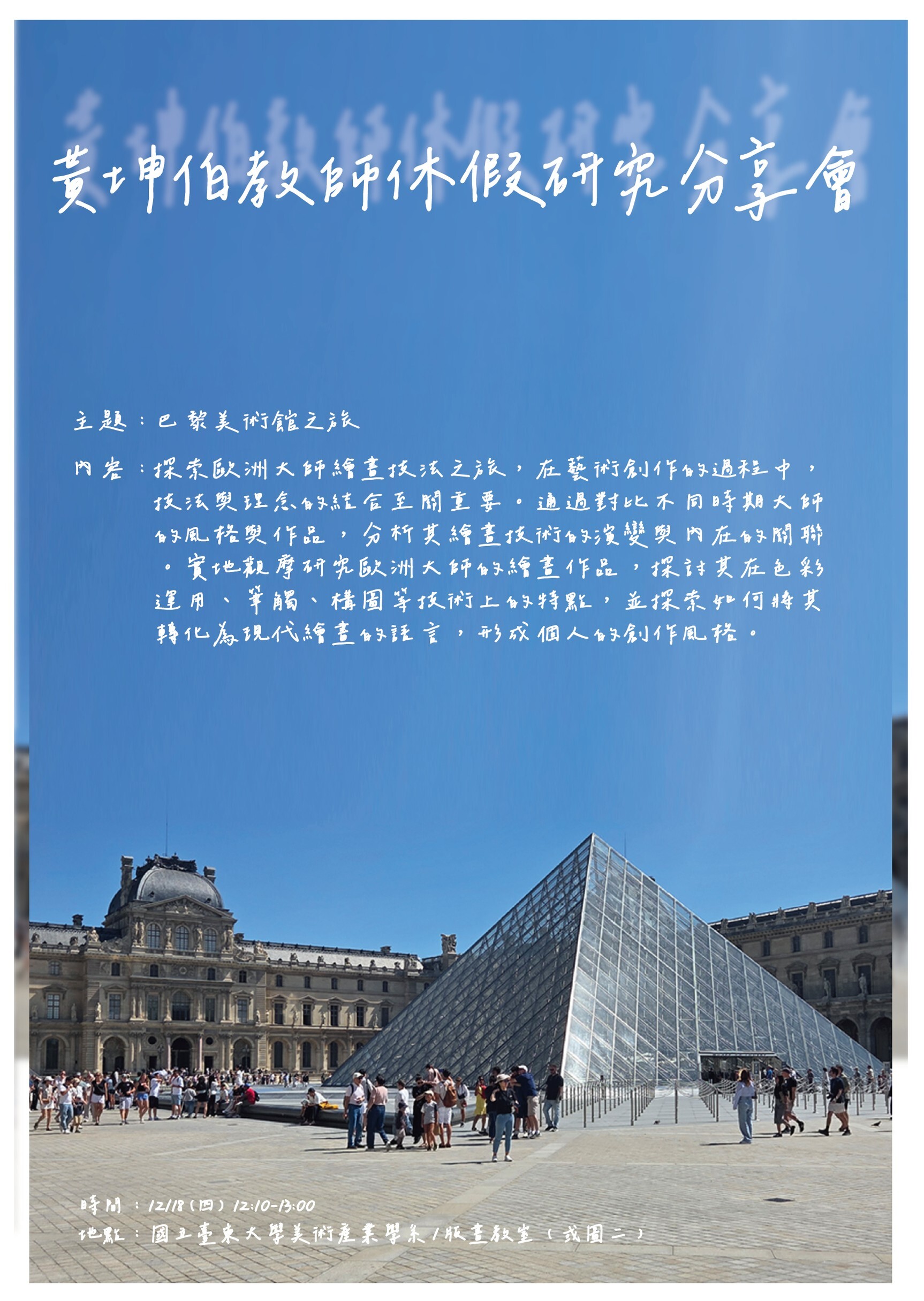 【美術產業學系】黃坤伯教師休假研究分享會《巴黎美術館之旅》
